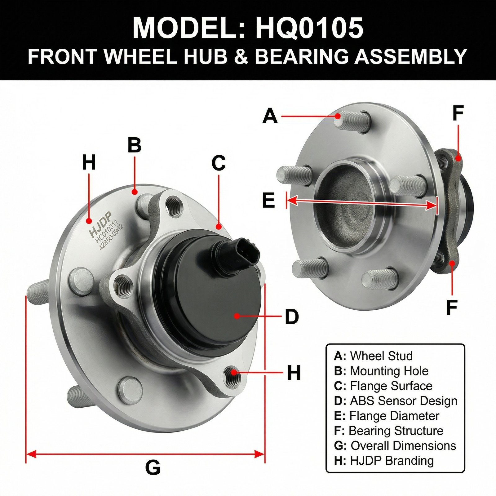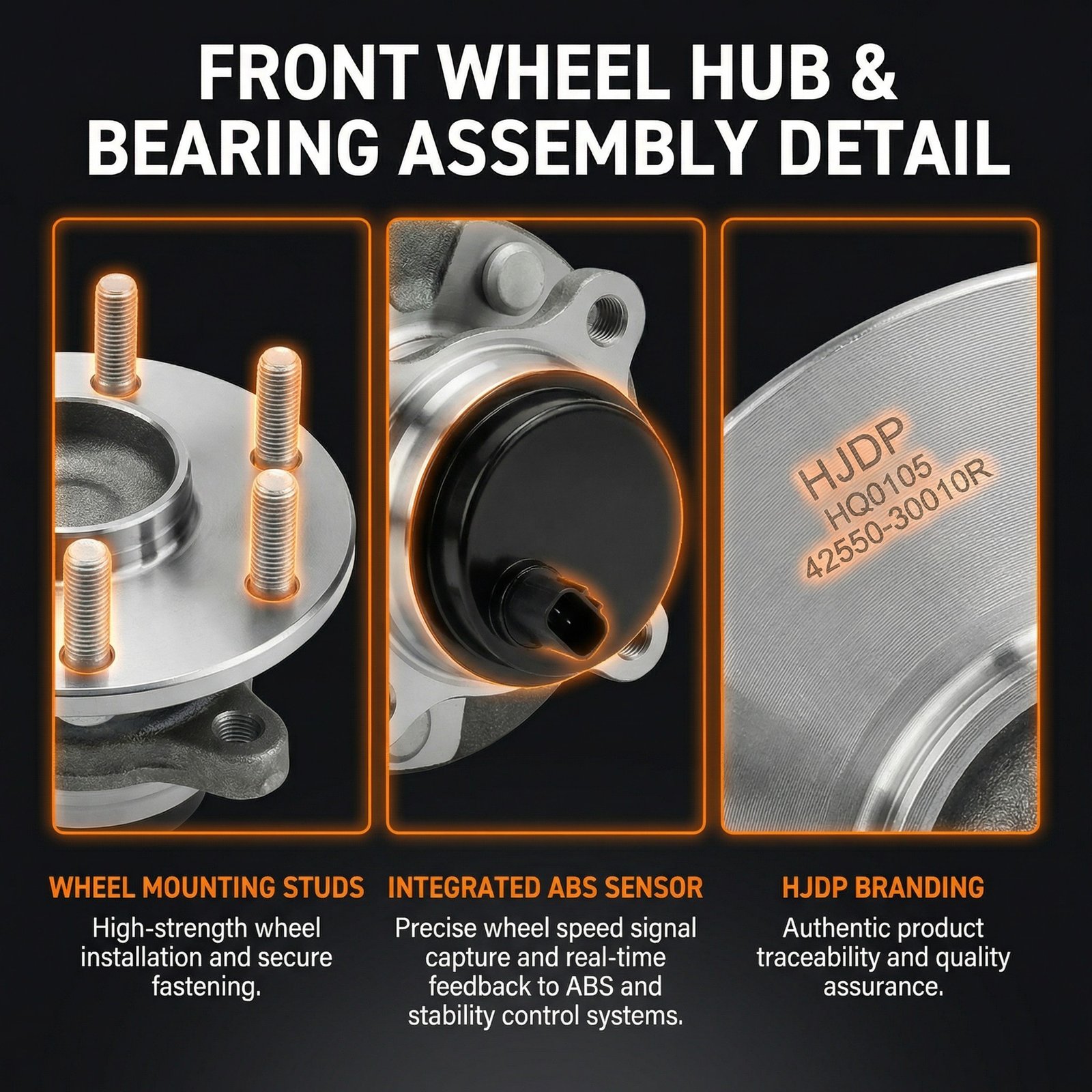 HJDP High-Precision Front Wheel Hub Bearing Assembly (Integrated Vertical ABS Sensor)