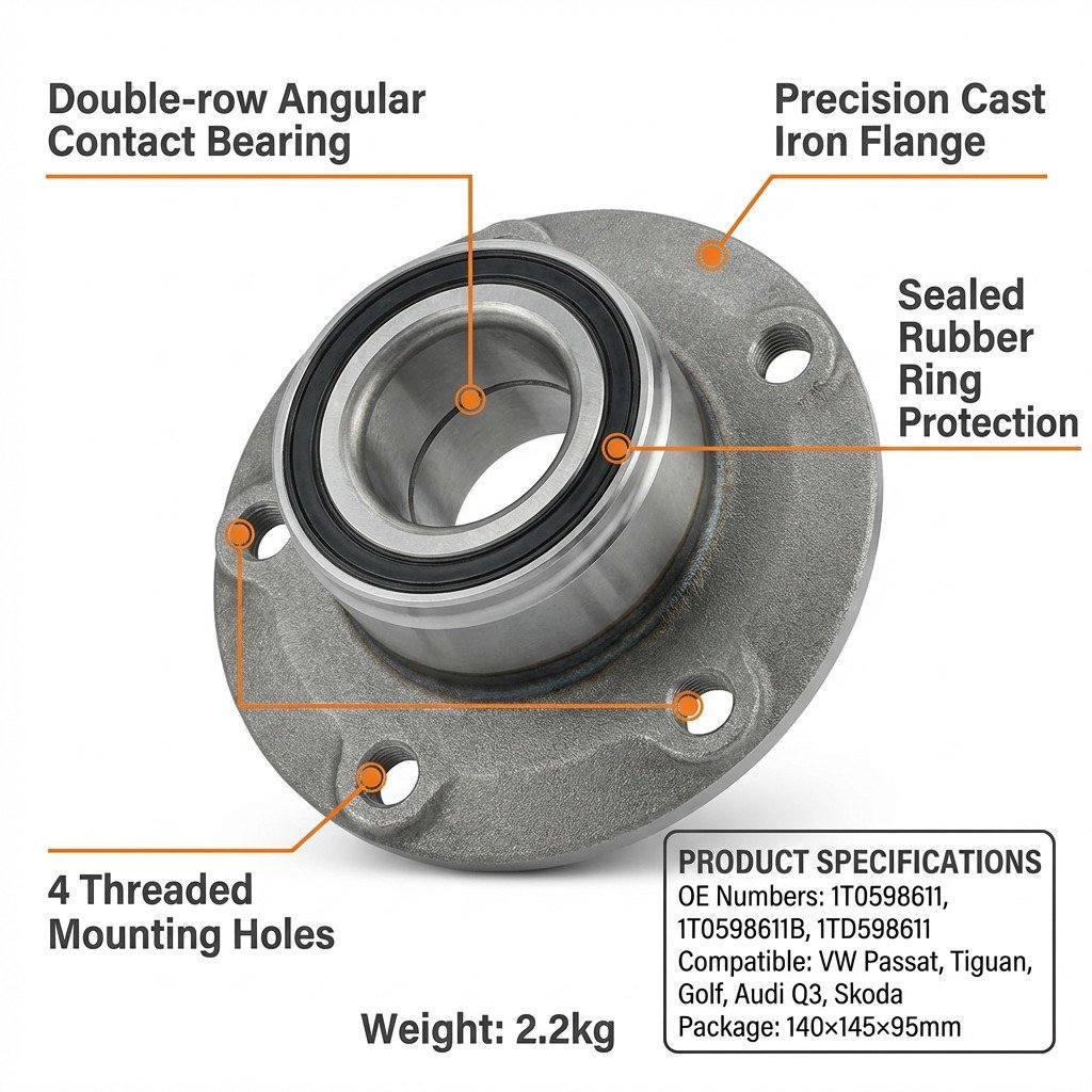 Superior Material Construction: Features a hybrid design with a matte grey cast iron flange for structural rigidity and high-grade polished GCr15 bearing steel for friction reduction. Salt bath quenching technology ensures exceptional hardness and fatigue strength.