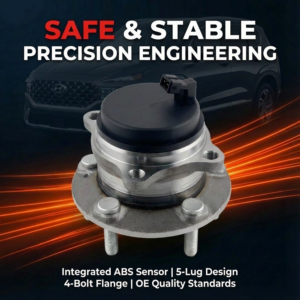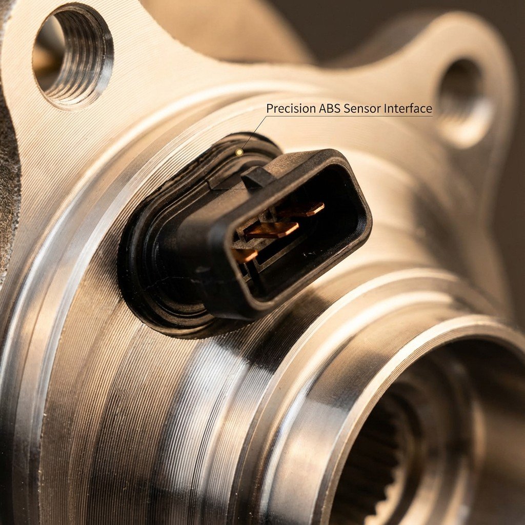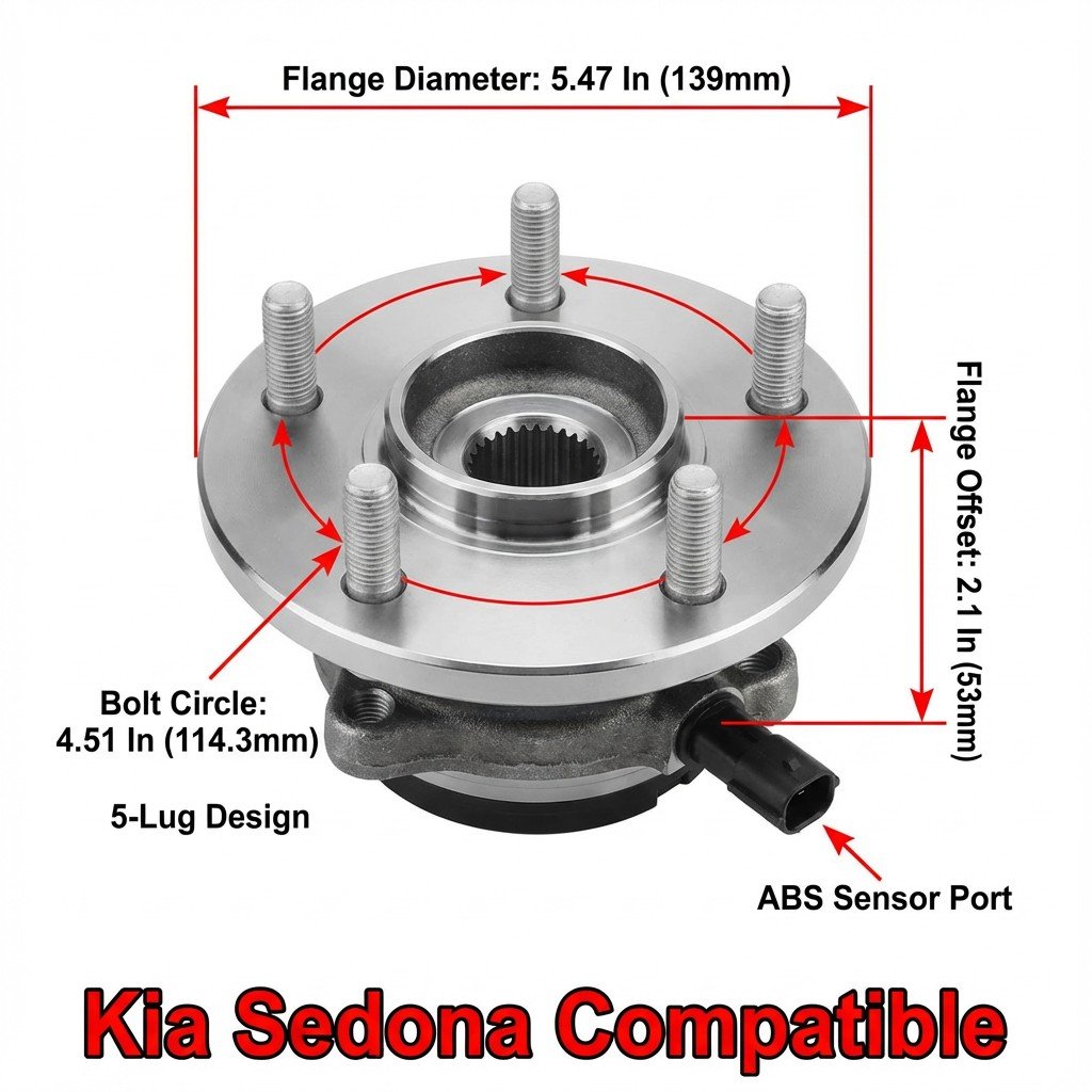 INTEGRATED ABS SENSOR & SPECS – Features a pre-installed, high-fidelity ABS sensor to restore accurate wheel speed monitoring and clear dashboard warning lights. Specifications include a 5-lug wheel pilot, 4-bolt flange, and precise 4.51-inch bolt circle diameter for secure mounting.