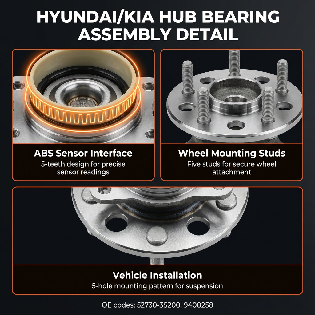 ABS Sensor Detail: Equipped with high-precision induction ring, perfectly matching the ABS system of Hyundai, Kia and JAC models, ensuring accurate and stable wheel speed signal transmission, effectively preventing wheel lock during braking on urban and light off-road roads.