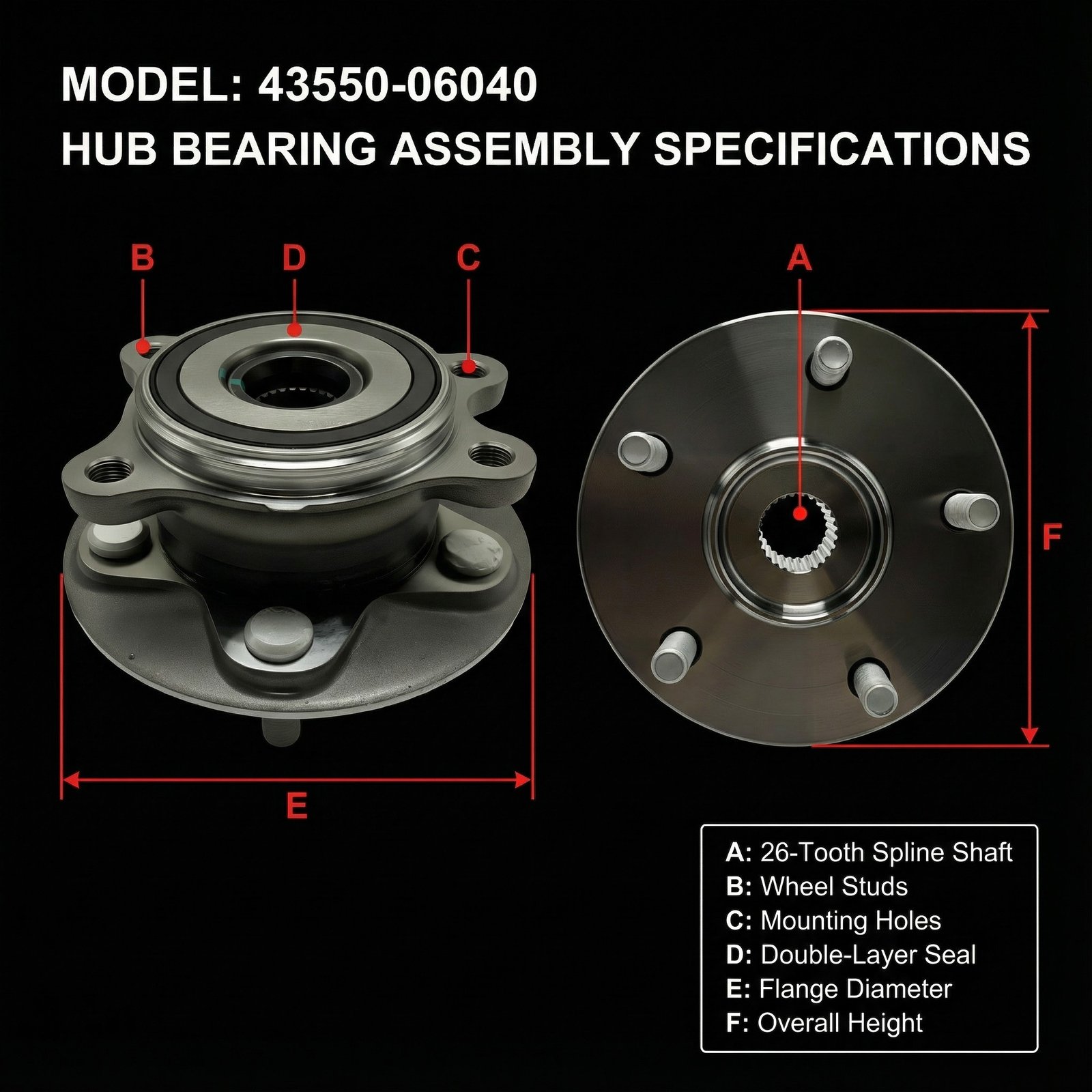 1. Before installation, confirm that the OE number and vehicle model match (especially for Toyota Camry 2018 gasoline version with 26 teeth) to avoid installation errors. 2. Keep the flange and steering knuckle mounting surfaces clean and free of debris to ensure a tight fit and stable operation. 3. Tighten the bolts according to the original factory torque standard (recommended 75-85 N·m) to ensure firm installation and avoid loosening during driving. 4. Check the ABS sensor connection after installation to ensure normal signal transmission; test the ABS function before formal use. 5. Regularly inspect the bearing for abnormal noise or vibration during use, and maintain or replace it in time if necessary.