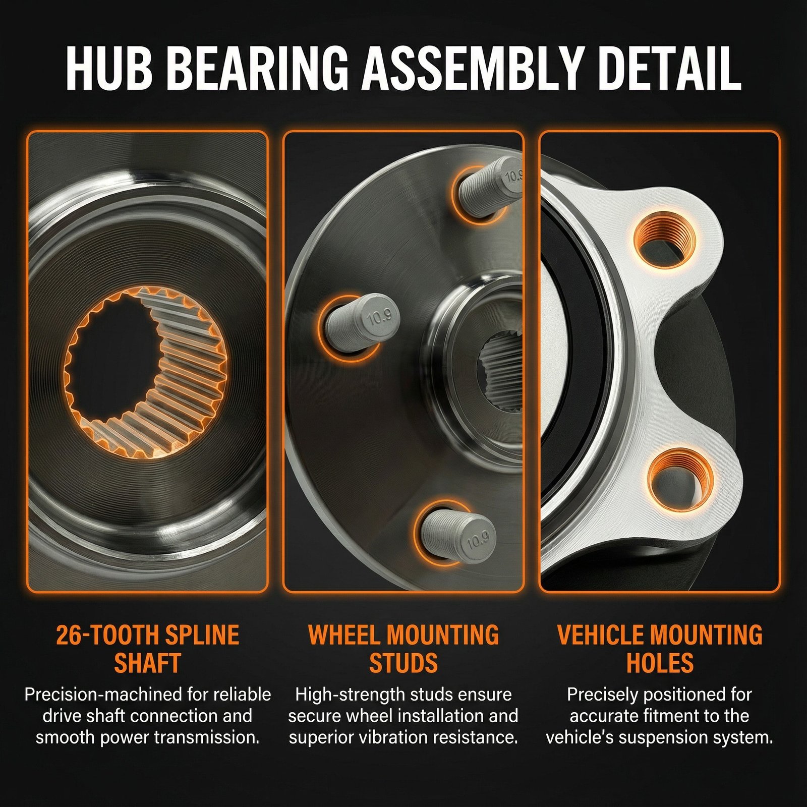 INTEGRATED 26-TOOTH ABS SENSOR: Features a pre-installed, high-precision 26-tooth ABS induction ring and weather-resistant connector. Ensures accurate wheel speed signal transmission to the vehicle’s ESP/ABS system for enhanced braking safety and stability.