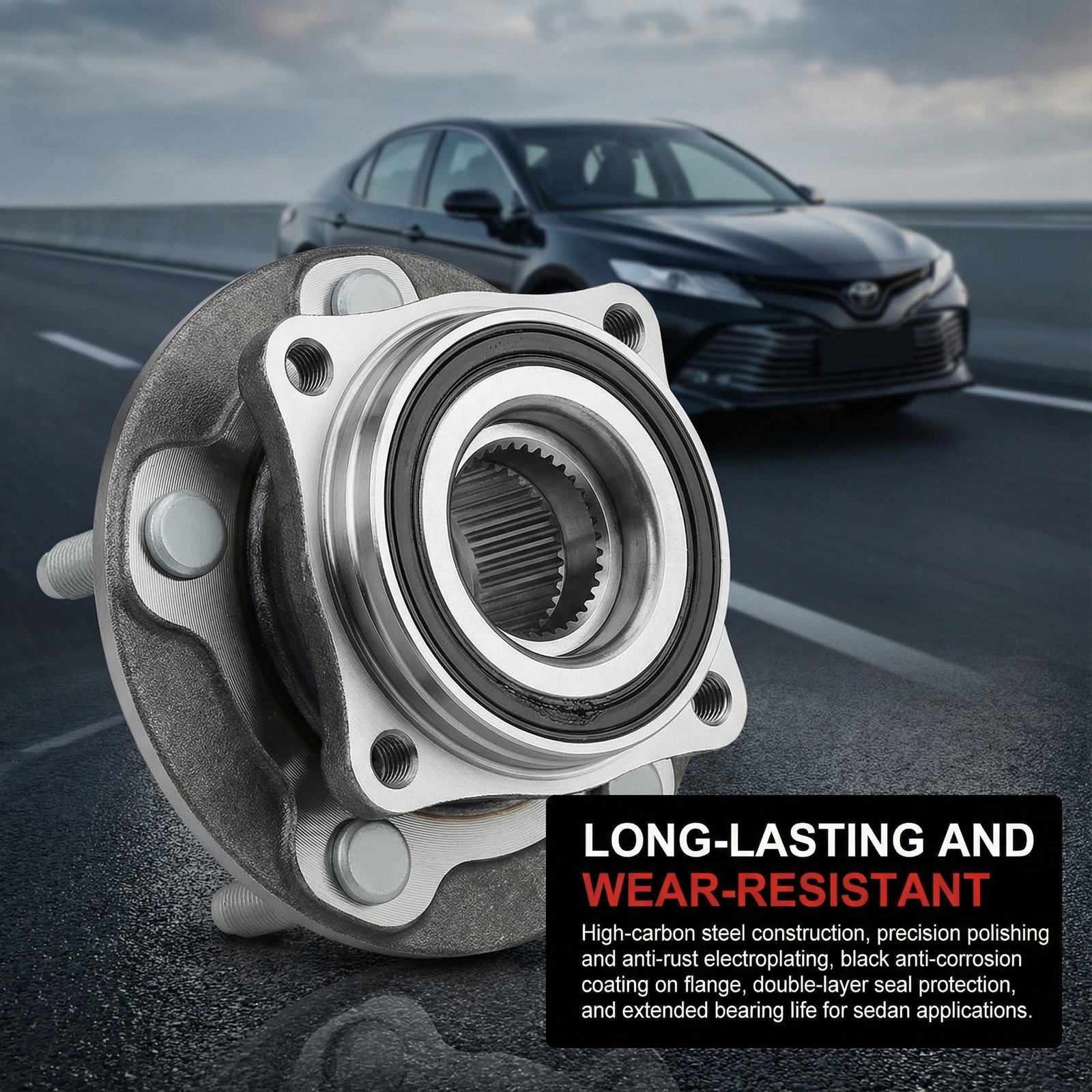 ULTRA-QUIET & SEALED DESIGN: Equipped with high-quality nitrile rubber multi-lip seals and premium synthetic grease. Effectively isolates dust, moisture, and road debris while preventing leakage, ensuring a smooth, noise-free, and vibration-free driving experience.